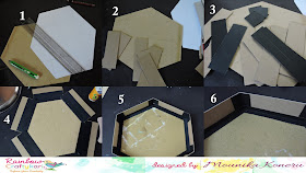 - For this, using a thick cardstock make a hexagonal template. Using the template cut chipboard in hexagonal shape for the base.